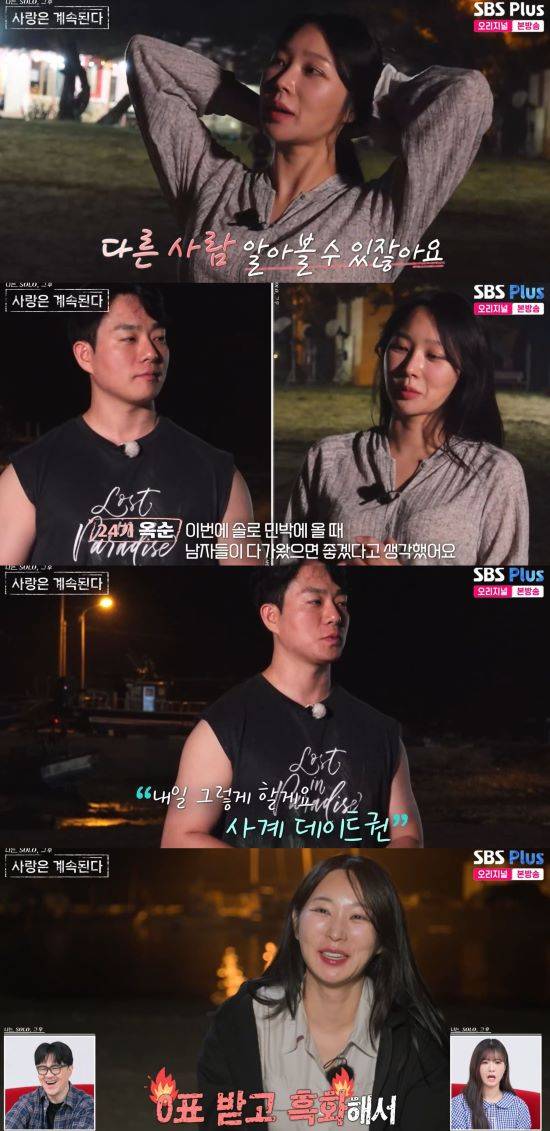 11일 방송된 SBS Plus와 ENA의 '나는 SOLO, 그 후 사랑은 계속된다'에는 24기 옥순이 미스터 권과 함께 대화를 나누는 장면이 공개됐다.