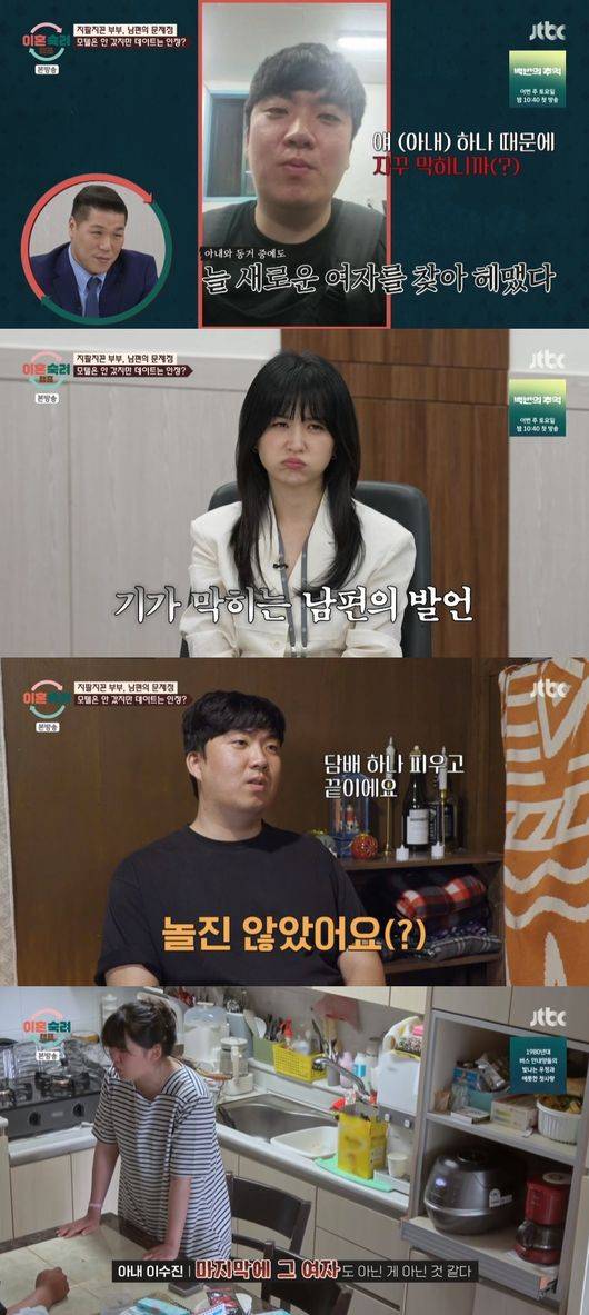 신혼 초 채팅 어플을 통해 또 다른 여성을 만났고, 아내는 남편의 지인으로부터 "점심시간에 어린 여자와 모텔에 간다"는 충격적인 이야기를 듣기도 했다.