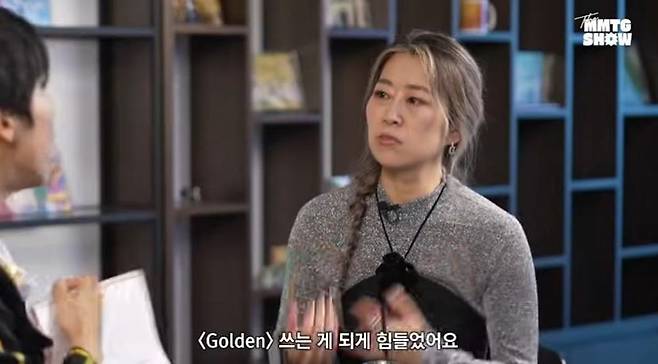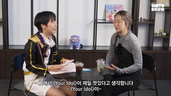 재재가 '케데헌' OST 최애곡을 묻자 메기강은 "'Golden(골든)' 쓰는 게 제일 힘들었다. 제일 어려운 곡이어서 애착이 있다. 그런데 저는 H.O.T. 팬이고 남자 아이돌을 좋아한다. 그래서 'Your Idol(유어 아이돌)'이 제일 멋있다고 생각한다"라고 고백해 웃음을 자아냈다.