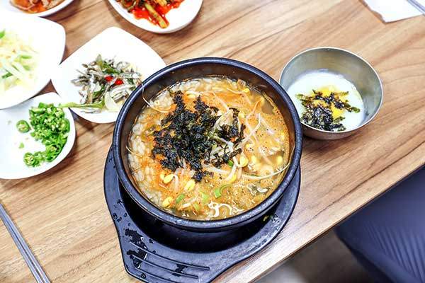 진안고원시장에서 30년 동안 해장국을 끓여 아들 삼형제를 대학 교육시킨 만만찮은 내공의 해장국집이다. 대표 음식은 콩나물국밥(8,000원). 들기름을 넣어 국물이 시원해, 숙취 해소로 제격이다. 선지국(8,000원), 시래기국(8,000원), 황태국(8,000원)이 주메뉴. 매달 12일만 문을 닫는데, "진안여성산악회 정기산행 날만 쉰다. 설악산부터 한라산까지 명산은 대부분 올랐다"며 월간山 기자를 무척 반가워했다.