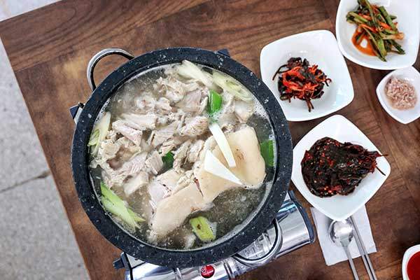 기본 반찬 15~17가지가 깔린다. 진안에서 난 제철 재료로 새벽 5시에 만드는 반찬은 매일 조금씩 달라진다. 1인 주문 가능한 고등어구이정식(1만5,000원), 생고기 김치찌개정식(1만3,000원)이 별미이며 1인 손님에게도 친절하다. 2인 이상 가능한 메뉴는 한방보쌈정식(1만5,000원), 철판 제육볶음 정식(1만5,000원), 등갈비정식(1만8,000원)이 인기 있다. 요리로는 묵은지 등갈비찜(5만5,000~4만5,000원)이 인기 있다. 진안 토박이자 등산마니아인 김정수 사장과 손맛 좋은 아내 백경옥씨와 싹싹한 딸이 운영한다. 새 건물이라 깔끔하고 쾌적하다.