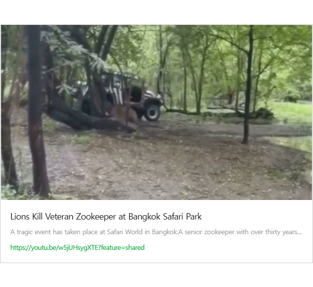 피해자는 이 동물원에서만 30년, 사자·호랑이 구역에서 20년 넘게 근무한 베테랑으로 알려졌다. 전문가인 그가 별도 안전장치 없이 야생동물 구역에 멈춰 선 경위는 아직 확인되지 않았다. 현지 매체 까오솟은 “떨어뜨린 물건을 찾으러 갔다가 물건을 줍기 위해 몸을 숙인 순간 사자가 달려든 것으로 보인다”고 전했다.