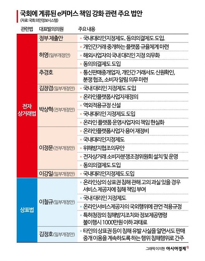 국회에서는 국내 대리인 지정 제도를 포함해 위조품 판매에 대한 e커머스 플랫폼들의 책임 강화 내용을 담은 법안들도 다수 제출됐다.