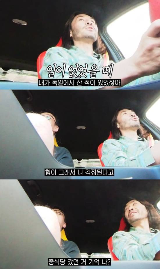 이동 중 노홍철은 "내가 (일이 없을 때) 독일에서 산 적이 있었지 않나. 형이 그래서 나 걱정된다고 독일에 와서 중식당 갔던 거 기억 나냐"고 입을 열었다.