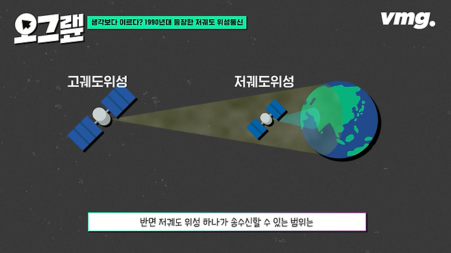 반면 저궤도 위성 하나가 송수신할 수 있는 범위는 고궤도 위성보다 훨씬 좁습니다. 그래서 더 많은 위성이 필요하다는 한계점이 있죠.