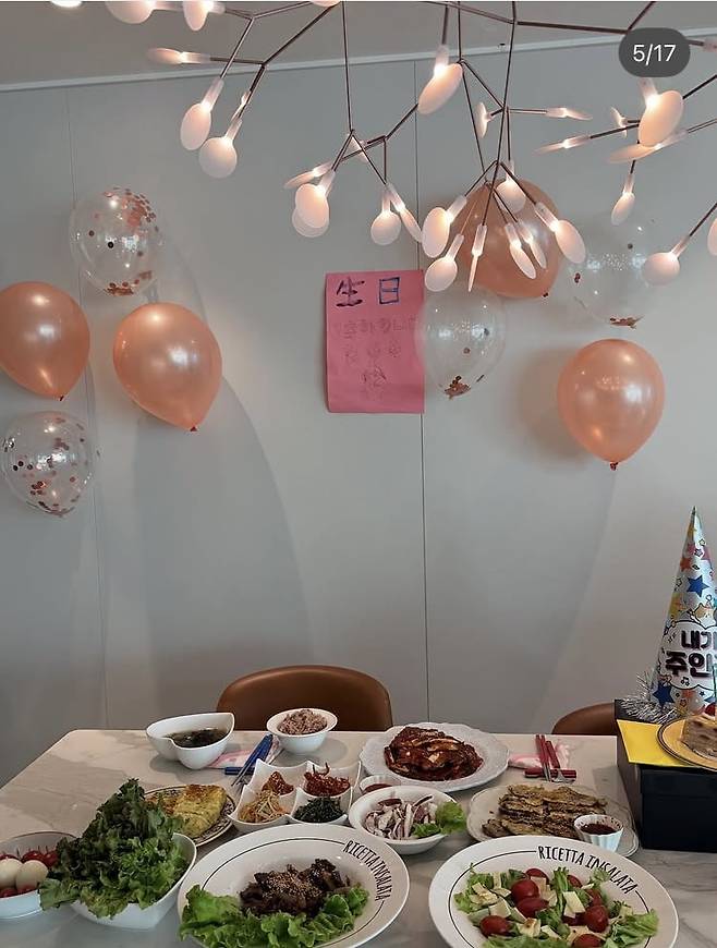 공개된 사진 속 장영란은 직접 남편의 생일상을 차린 모습이다. 두 아이들 포함 네 가족은 행복한 생일파티를 즐기고 있다.