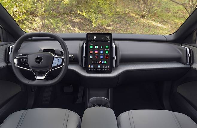 실내는 본질적으로 EX30과 동일하다. 계기판과 스위치를 과감히 덜어낸 대시보드는 탑승자 앞에 넓은 수평선을 펼쳐놓으며, 단순함이 곧 확장감이라는 것을 보여준다. 단일 트림인 파인 인테리어가 적용돼 천연 아마씨 섬유, 울 블렌드, 노르디코 소재로 지속 가능성도 확보했다.