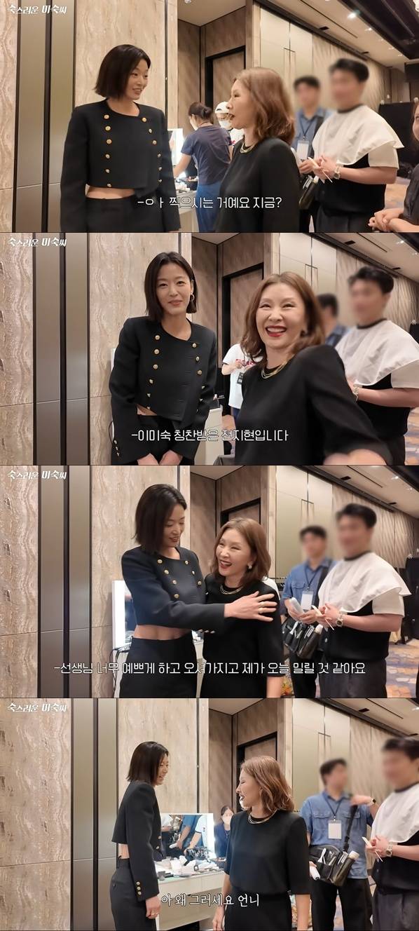 그 주인공은 다름 아닌 전지현이었다. 전지현은 "유튜브 찍고 있냐"며 이미숙의 허리를 감싸 안으며 친근함을 드러냈다.