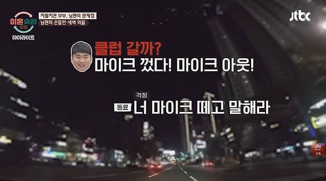 또 남편은 지인들과 술자리를 가진 뒤 지인들에게 클럽을 가자고 요청하기도 했다. 이 외에도 '여자 없으면 노래방 안 간다', '여자 불러 달라'라는 등 여자를 찾는 그의 목소리가 계속됐다. 결국 그는 촬영 마이크를 떼고 현금을 챙겨 노래방으로 향했다.