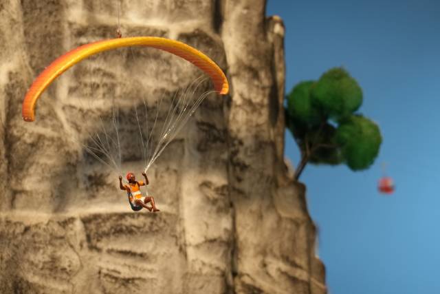 이 풍경은 특정한 장소를 재현한 것이 아니라 여행에 대한 환상과 추억을 따뜻하게 표현한 것으로, 단단해 보이는 산 역시 솜으로 만든 것이다.