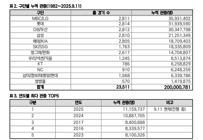 KBO리그가 출범 44년만에 누적 관중 2억명(정규시즌 기준)을 달성했다.