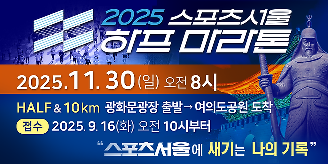 이번 대회는 총 15,000명 규모로 진행되며, 종목은 하프코스와 10km 코스 두 가지로 운영된다. 참가자 접수는 오는 9월 16일 오전 10시부터 시작되며, 선착순 마감될 예정이다. 서울 도심 최초로 마련된 특별한 하프 코스로 진행되며, 참가자 전원의 기록이 스포츠서울 지면을 통해 공개돼 의미를 더한다.