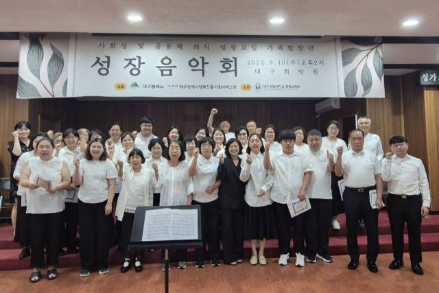 지난 10일 대구광역시와 대구시행복진흥원 사회서비스원이 주최하고 대구공업대학교 평생교육원이 주관한 '가족합창단 성장음악회'가 대구행복진흥원 아름마을에서 개최됐다.