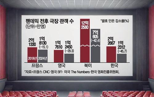 반면 홀드백을 가장 강력하게 시행 중인 프랑스는 2019년 극장 관객 수가 2억1330만명에서 작년 1억8130만명으로 약 15% 감소하는 데 그쳤다.