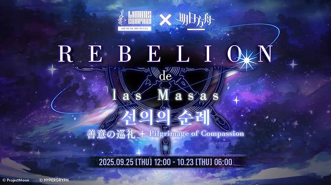 프로젝트문 '림버스 컴퍼니'가 하이퍼그리프 '명일방주'와 컬래버레이션 '챕터 8.5 EX 선의의 순례'를 예고했다.