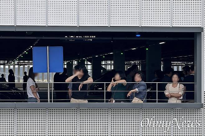 | ▲ 미국 조지아주에서 구금됐던 노동자들의 가족·동료들이 12일 오후 3시 30분께 인천국제공항 2터미널 장기주차장 주차타워 4층에서 이들을 애타게 기다리고 있다. |