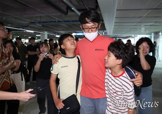 | ▲ 미국 이민 단속으로 구금됐던 현대차-LG엔솔 배터리공장 건설 현장 노동자들이 12일 오후 인천국제공항 제2여격터미널에 도착한 뒤 가족들과 상봉하고 있다. |