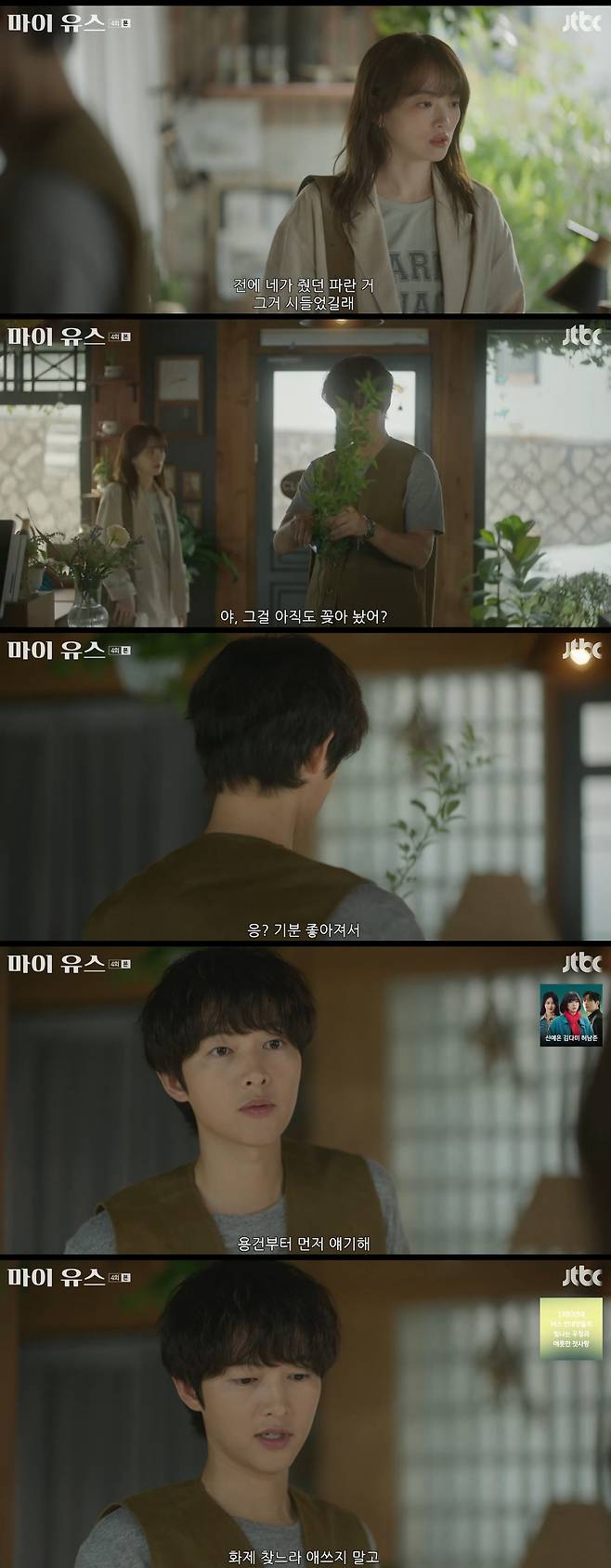 12일 방송된 JTBC 금요시리즈 '마이 유스'에서는 선우해(송중기 분)과 성제연(천우희)가 꽃집에서 대화를 나누는 모습이 공개됐다.