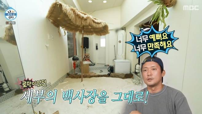 김대호는 "저의 숙원인 모래사장을 만들 거다"라며 "처음 간 해외 모래사장이 세부였다. 하얀 백사장을 봤을 때 항상 곁에 두고 즐기고 싶었다. 2호 집을 지으면서 가능성을 봤다. 일부러 중정 바닥을 타일로 만들었다"라고 밝혔다.