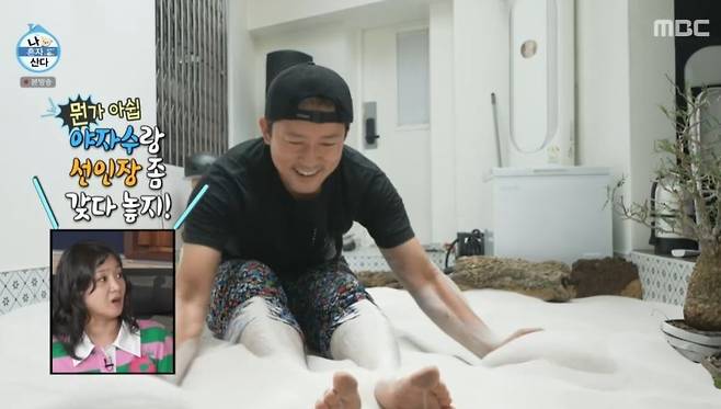 [TV리포트=남금주 기자] 김대호가 집에 모래사장을 만들어 '대운대'를 개장했다.