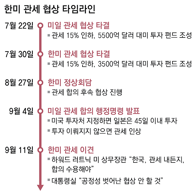 - 美 “투자처 정하면 日처럼 45일내 돈 보내라” 韓 “국익이 우선”