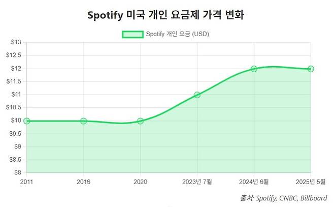 거대 금융 자본의 등장은 음원 스트리밍 산업에 강력한 비용 압력 요인으로 작용하고 있다. 스트리밍 플랫폼의 이용료 인상 압박이 대표적이다. 글로벌 음원 플랫폼 시장의 1위 업체인 스포티파이는 2023년과 작년에 미국을 포함한 주요 시장에서 이용료를 계속 인상했다. 이달 기준 미국의 개인 프리미엄 요금은 월 11.99달러까지 올랐다. 스포티파이는 올 하반기 유럽 등지에서도 추가 가격 인상을 예고했다.