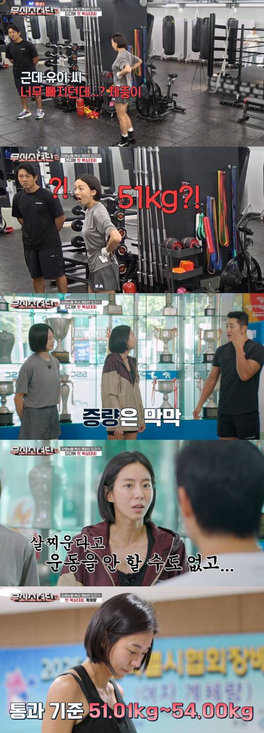 현재 51kg이라고 밝힌 유이는 "식단 관리하면서 잘 먹어보겠다"고 씩씩하게 말했고, 박지훈 코치는 "탄수화물을 많이 먹어라"라고 조언했다.