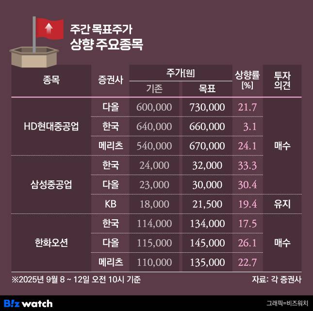 이번 주 HD현대중공업과 삼성중공업, 한화오션 등 국내 조선 3사의 목표가가 일제히 올랐다. 한미 조선 산업 협력 프로젝트인 '마스가(MASGA·Make American Shipbuilding Great Again)'에 따라 하반기 수주 증가가 기대되면서 실적 향상이 예상된다는 평가다.조선 빅3, 마스가 효과에 목표가 일제히 상향