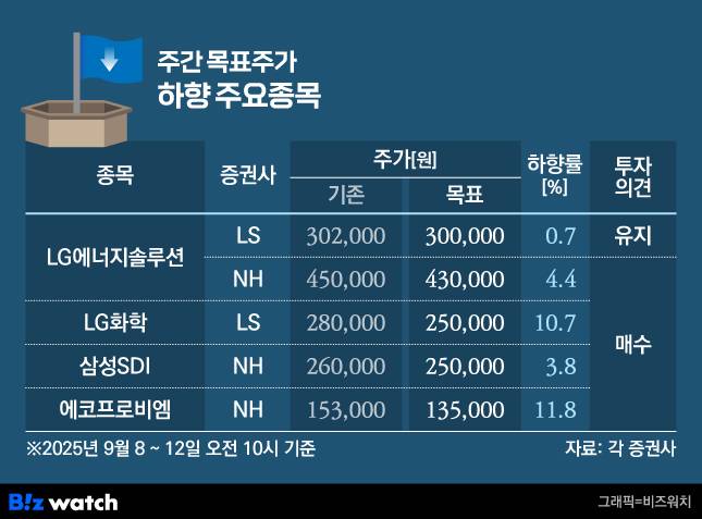 이번 주 LG에너지솔루션과 삼성SDI 등 2차전지 업종에 대한 증권가의 눈높이가 낮아졌다.