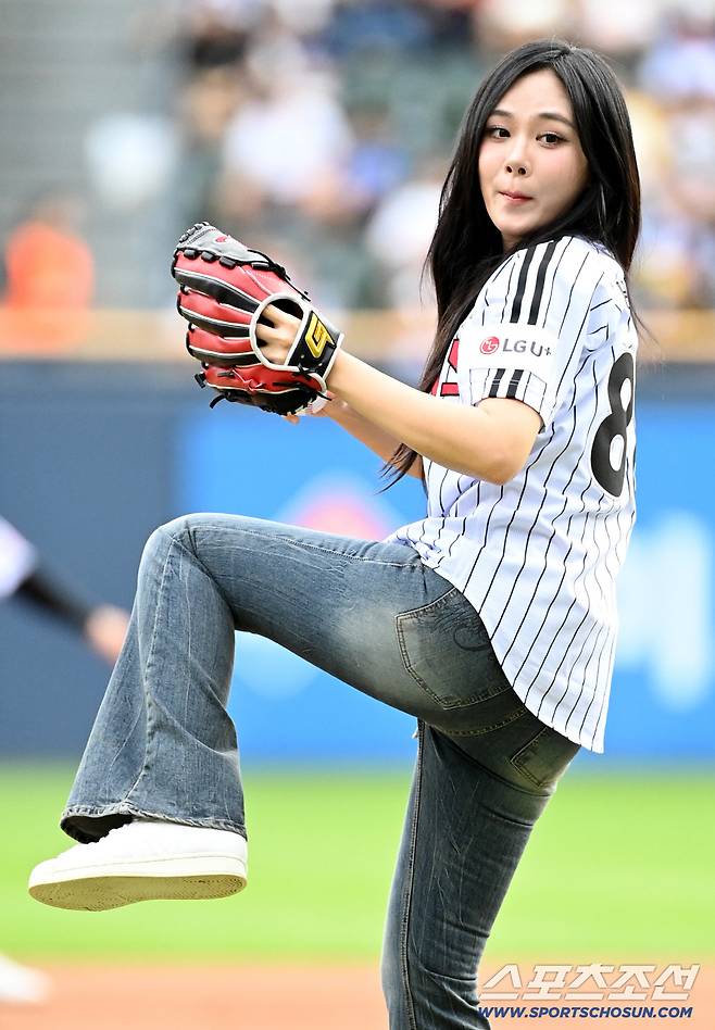 13일 잠실야구장에서 열린 KIA와 LG의 경기, 가수 비비가 시구를 하고 있다. 잠실=허상욱 기자wook@sportschosun.com/2025.09.13/