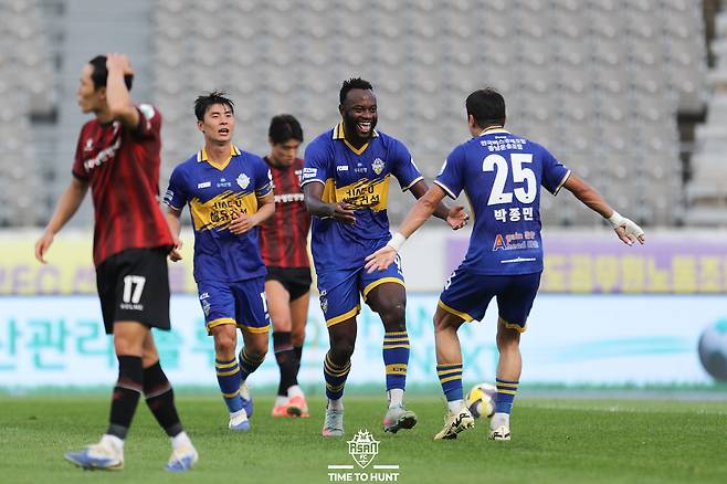 충남아산은 13일 이순신종합운동장에서 펼쳐진 부천과 하나은행 K리그2 2025 29라운드 홈경기에서 은고이와 데니손, 김종석의 연속골을 앞세워 3대 0 완승을 거뒀다. 4경기 만에 승점 3을 추가한 충남아산은 승점 36(8승12무9패)을 쌓았다. 순위(9위)는 바뀌지 않았지만 PO 진출 마지노선인 5위 부산 아이파크(승점 44)와 격차를 승점 8로 좁혔다. 승점 48(14승6무9패)로 제자리걸음을 한 부천은 3위에 머물렀다.