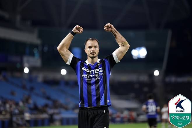 13분 인천이 또 한골을 더했다. 이주용이 왼쪽에서 날카로운 크로스를 올렸다. 무고사가 껑충 뛰어올라 헤더로 마무리했다. 무고사의 시즌 17번째 골로 득점 단독 선두를 질주했다.