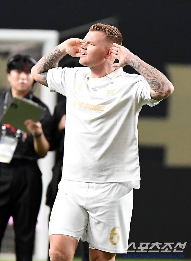 '2025 아이콘매치: 창의 귀환, 반격의 시작' 이벤트 매치가 13일 오후 서울 상암월드컵경기장에서 열렸다. 파워도르 매치에서 리세가 최고점을 얻은 후 환호하고 있다. 상암=정재근 기자 cjg@sportschosun.com/2025.9.13/