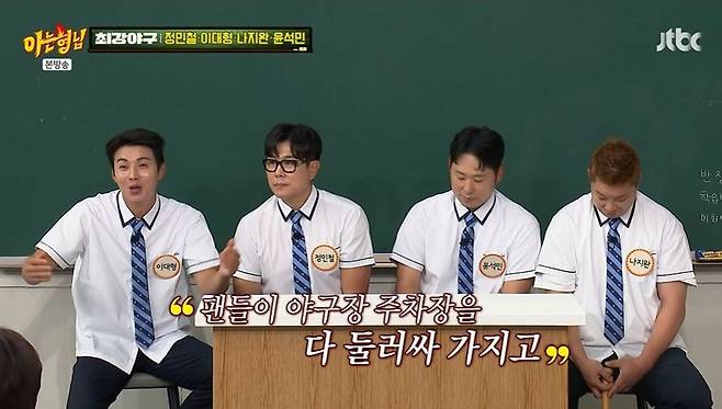 이후 민경훈은 성적이 좋은 팀과 부진한 팀 팬의 차이점을 물었고, 윤석민은 "잘할 땐 야구장이 가득 차고, 응원밖에 없다. 근데 못할 땐 관중 수를 손으로 셀 수 있을 정도"라고 했다. 이대형은 "우리는 야구를 못했을 때 팬들이 집에 보내주지 않았다. 야구장 주차장을 다 둘러싸고 청문회 한다고 집을 보내주지 않았다. 근데 잘할 땐 맛있는 것도 많이 주셨다"라고 전했다.