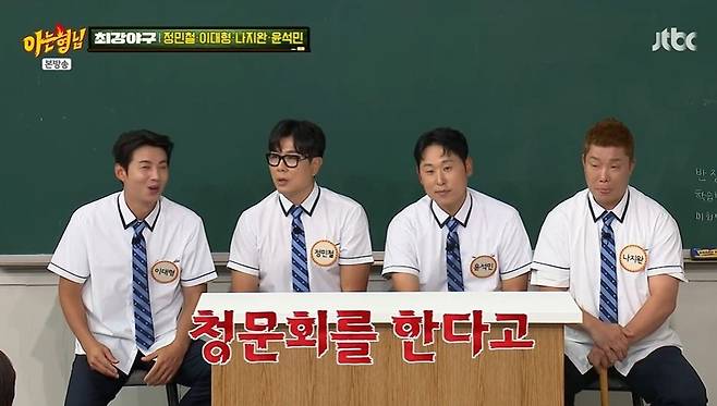13일 방송된 JTBC '아는 형님'에서는 '최강야구' 정민철, 이대형, 나지완, 윤석민이 출연했다.