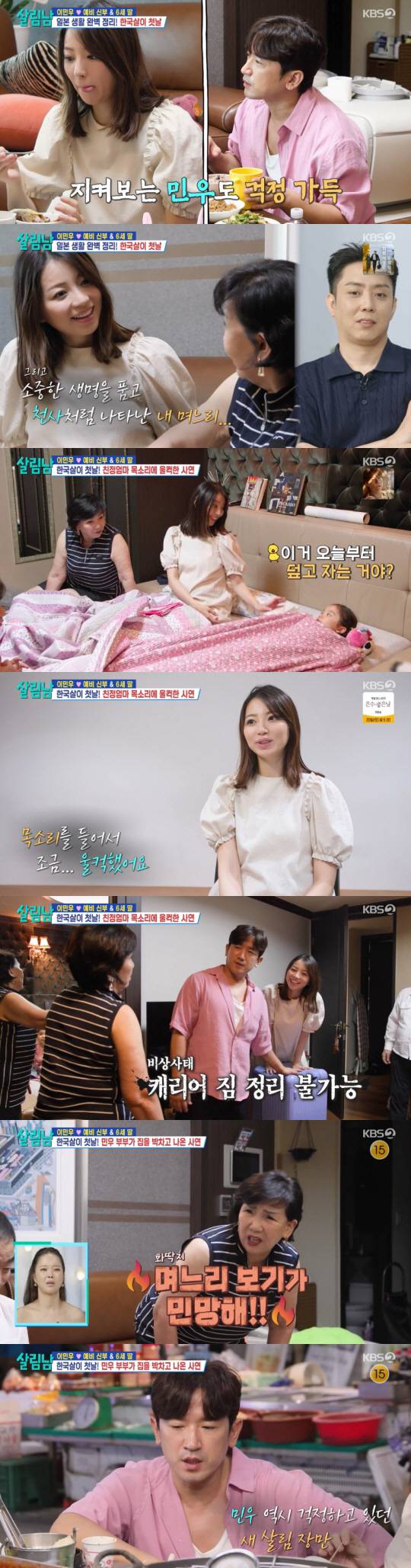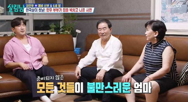 하지만 훈훈한 분위기도 잠시, 어머니는 새 식구를 맞을 준비를 전혀 하지 않은 이민우에게 분노했다. 며느리와 손녀의 짐을 넣을 공간조차 마련되지 않은 상황에 어머니는 "며느리 보기 민망해 죽겠다"며 잔소리를 쏟아냈다.