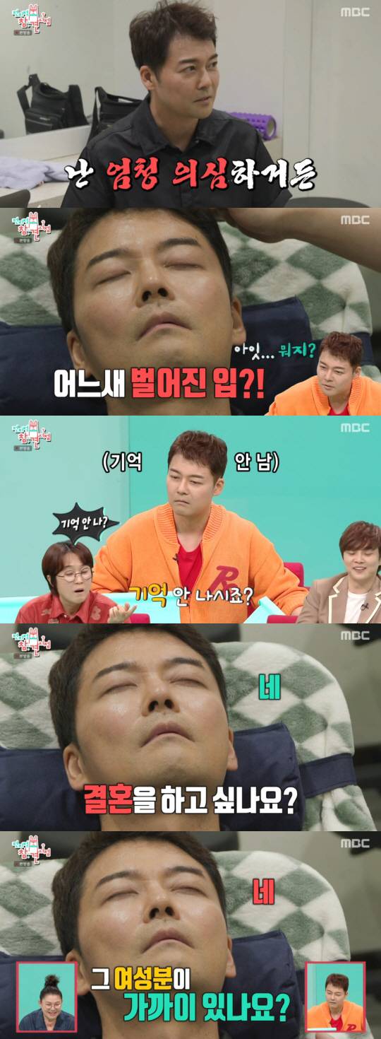 최면 상태에서 전현무는 평소 고민이 있었냐는 질문에 "나이"라고 답했다. 이어 구체적인 고민을 묻자 "결혼"이라며 무의식중 솔직한 속마음을 말했다. 최면에 걸린 화면 속 자신을 본 전현무는 "기억이 난 난다"며 놀라움을 감추지 못했다.