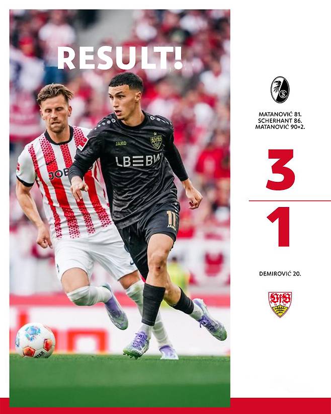 슈투트가르트는 13일(한국시각) 독일 프라이부르크의 유로파-파크 슈타디온에서 열린 프라이부르크와의 2025~2026시즌 독일분데스리가 3라운드 원정경기에서 1대3 역전패했다.