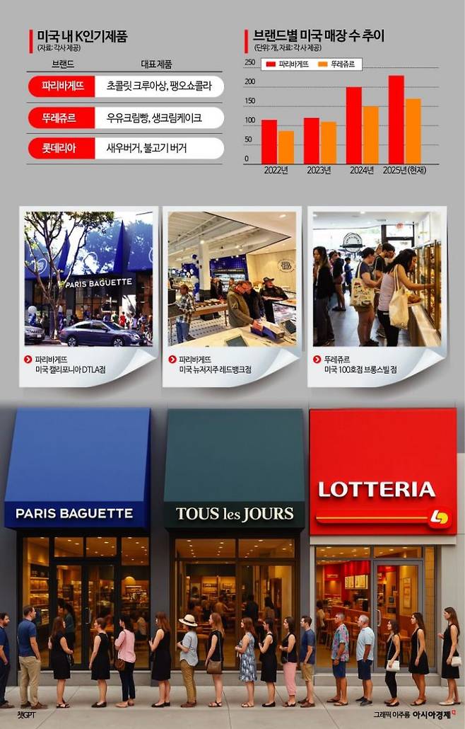 아침 출근길을 사로잡은 파리바게뜨의 크루아상, 햄버거 본고장에서 줄 세운 롯데리아, 시간당 100개씩 팔리는 뚜레쥬르의 우유크림빵. 미국 시장에서 K베이커리 브랜드가 확고한 입지를 다지고 있다. 단순히 교포 중심 '향수 비즈니스'가 아니라 현지인의 일상 속에 파고든 메인 브랜드로 성장하고 있다.