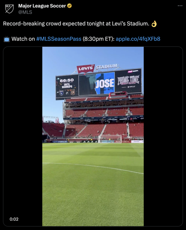 다만 손흥민의 영향력은 진짜였다. 경기 전부터 경기장 곳곳에는 태극기를 든 한국 팬들이 손흥민을 맞이할 채비를 하고 있었다. MLS는 손흥민과 방송 인터뷰를 진행하는 등 일거수일투족을 SNS에 공유하며 경기 분위기를 달궜다. 또한 공식 SNS를 통해 "오늘밤 리바이스 스타디움에 기록적인 관중이 몰려들 걸로 예상된다"라며 산호세 홈경기 기존 최다 관중 50,850명 기록이 이번에 경신되리라 내다봤다.
