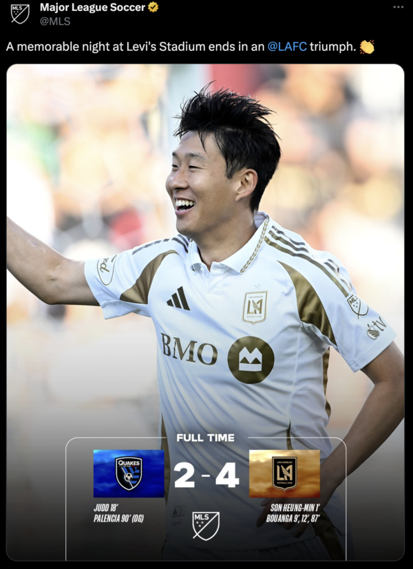 [풋볼리스트] 김희준 기자= 손흥민이 로스앤젤레스FC(LAFC)뿐 아니라 미국 메이저리그사커(MLS) 다른 구단의 역사도 만들었다.