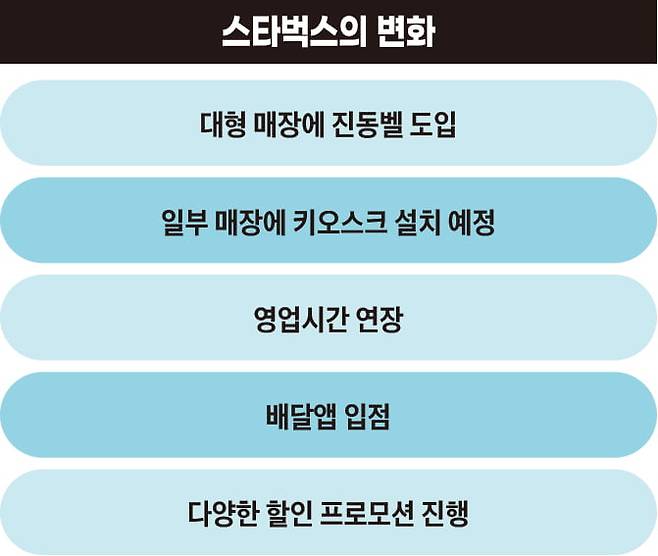 커피빈, 할리스, 이디야 등 여러 경쟁사들이 전 매장으로 진동벨과 키오스크를 확대해나갈 때도 스타벅스는 꿈쩍도 하지 않았다.