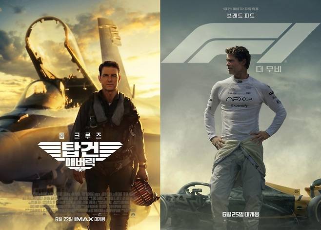 '탑건: 매버릭'과 'F1' 두 작품의 공통점은 50대를 훌쩍 넘긴 중견 배우 톰 크루즈와 브래드 피트가 주연을 맡았다는 점이다. 다소 저예산 영화에 많이 출연해왔던 브래드 피트는 최고 흥행작이 '월드워 Z'일 정도로 흥행과는 거리가 멀긴 했지만, 톰 크루즈는 본인의 이름을 단 프랜차이즈 작품이 여럿 있을 정도로 '흥행 보증 수표'로 꼽히는 편.