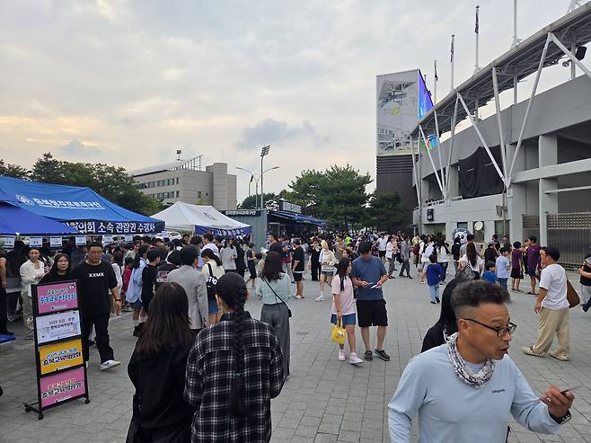 오늘(14) 저녁 7시 충북청주 FC 홈경기를 앞둔 충북 청주종합운동장은 6천여 명의 학생과 학부모들로 북적이고 있습니다.