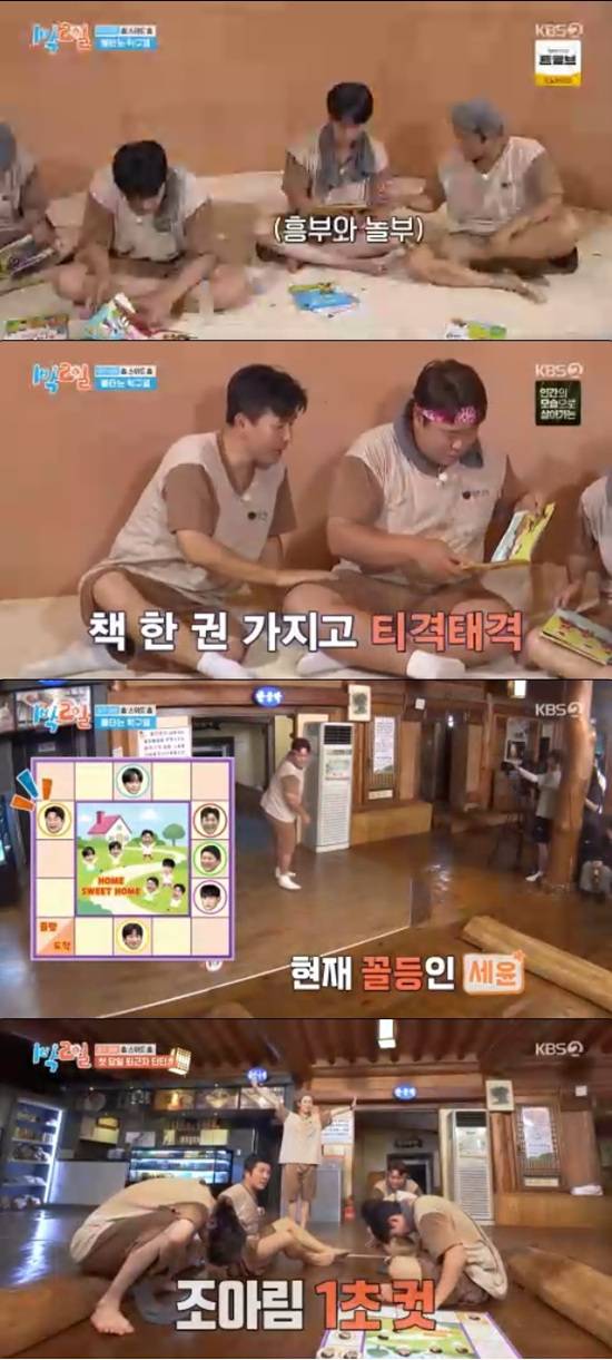 멤버들은 동화책을 5분 동안 공부하고 퀴즈 정답을 맞혀야 했다. 정답을 맞히고 밖으로 나가면 퇴근이 걸린 주사위를 던져 말을 전진시킬 수 있었다.