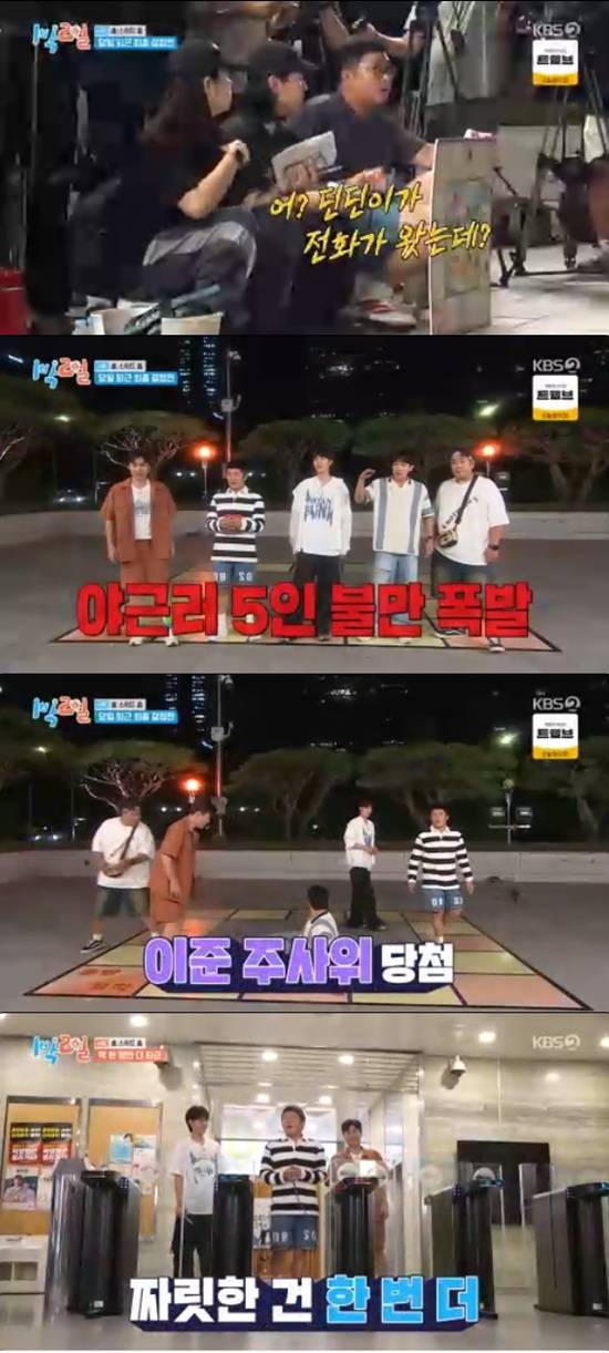 딘딘이 퇴근한 후 나머지 다섯 멤버는 여의도 KBS로 향해 당일 퇴근을 위한 미션에 돌입했다.