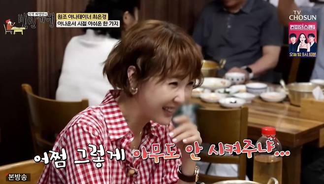 최은경은 "아나운서 시험은 한 번에 패스했냐"란 질문에 "아뇨. '이거 떨어지면 안 할 거야' 생각하고 1년 돈 후에 KBS가 마지막이었다"라며 "별 거 다 해봤는데, 앵커만 못해봤다"라고 전했다. 최은경은 "전 뉴스 하는 사람이 멋있어서 (아나운서가) 되고 싶었던 건데, 어쩜 그렇게 아무도 안 시키냐. 누구 하나는 앉혀야 하는 상황인데, 내가 앞에 있는데도 '사람이 없잖아'라고 가더라"면서 당시를 떠올렸다.