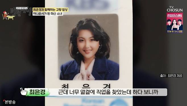 이날 이화여자대학교 영어교육학을 전공한 최은경은 아나운서를 꿈꿔본 적이 없다고 고백했다. 최은경은 "텔레비전 나오는 사람은 뭔가 되게 특별하고, 인형같이 생기는 사람들만 하는 줄 알았다. 그래서 그쪽은 꿈꿔본 적도 없다. 근데 너무 얼결에 직업을 찾았는데, 하다 보니까 저같이 내성적인 사람도 할 수 있더라"라고 밝혔다.