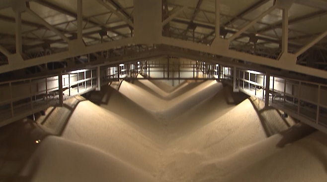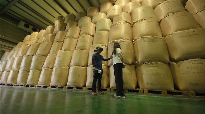 정부 비축미가 쌓인 충남의 한 저온 저장 창고.