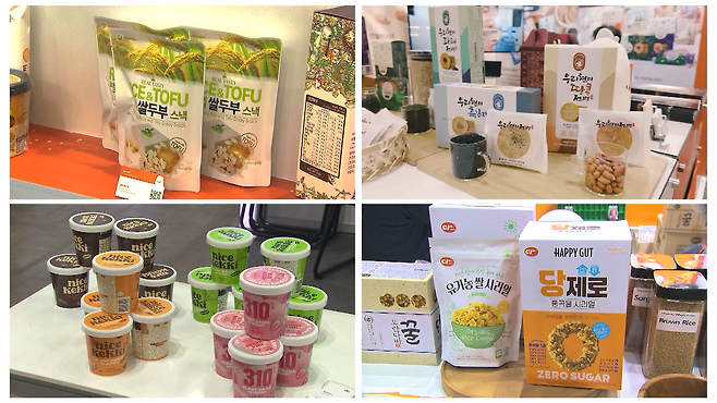 쌀을 활용한 다양한 제품들이 빼곡히 전시돼 있습니다.